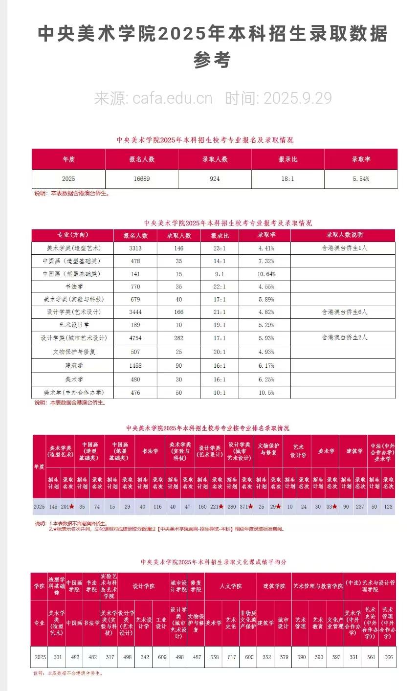 从往年招生情况看:央美2025年高考录取924人,报名人数1.67万人,录取率5.54%,录取比18:1。